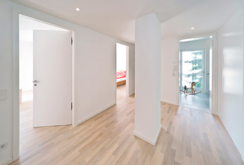 Der vormals beengte Flur im 1. Obergeschoss wird zur Diele vergrößert, um die herum drei