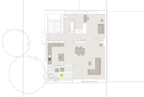 Die Dachgeschossebene bildet den Gemeinschaftsbereich der Familie, in dem sich die